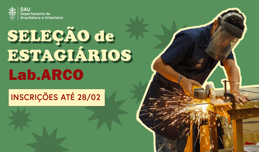 Está aberto o processo seletivo para estágio no Laboratório de Arquitetura e Construção (LABARCO) do DAU | PUC-Rio, com 2 vagas de 20h semanais e duração mínima de 6 meses, com possibilidade de prorrogação.